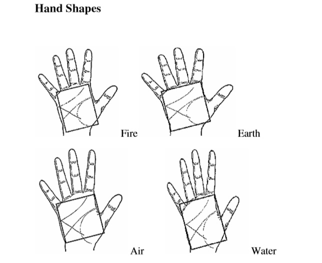 There are four types of hands representing four different elements. Lines of dominant and passive hands tend to be different. Following are different types of hands which are seen during Hand Reading: